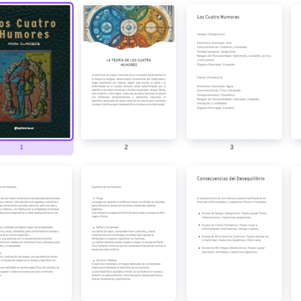 Los cuatro humores, según la medicina antigua, son la sangre, la bilis negra, la bilis amarilla y la flema, y se creía que influían en la salud y el temperamento. Estos fluidos estaban asociados con los elementos y las estaciones.